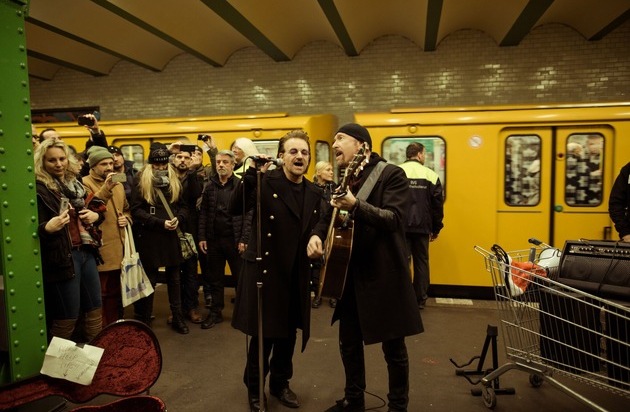 U2 in Berlin! Bono + The Edge fahren mit der U-Bahnlinie U2 + Performen live SONGS OF EXPERIENCE