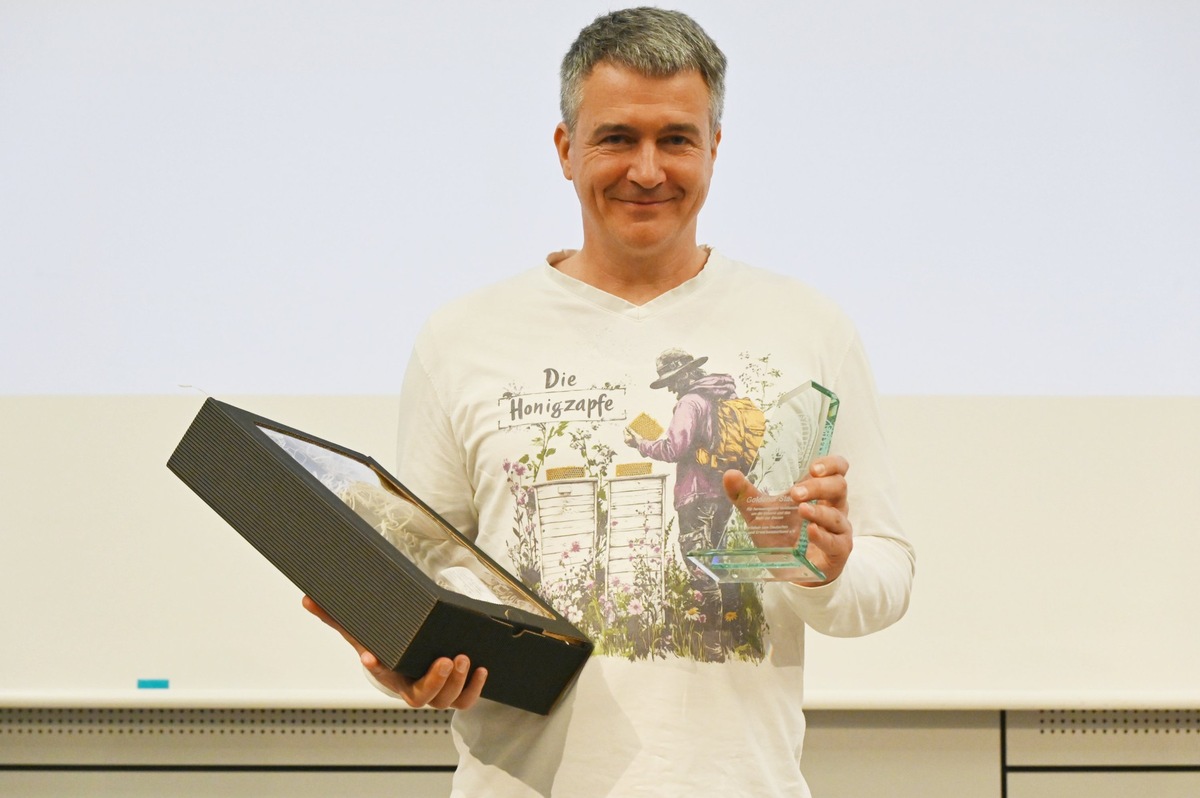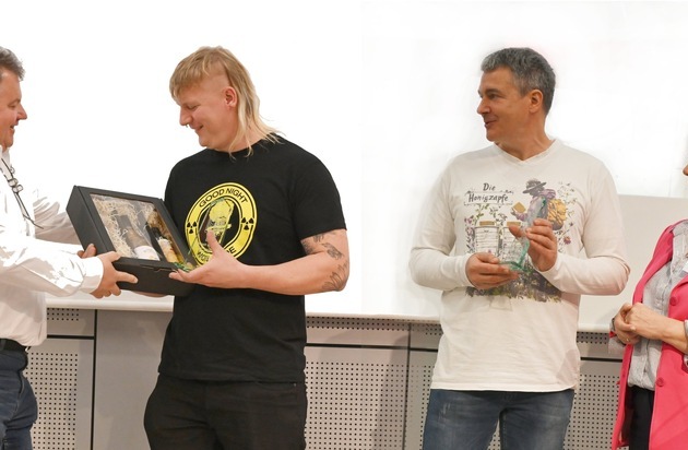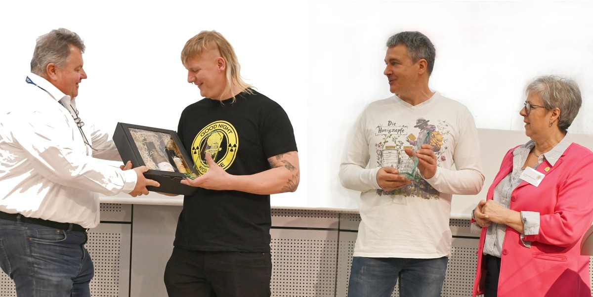 „Wir ehren Martin Müller, unter anderem für seine hervorragende Zusammenarbeit mit zahlreichen Fernseh- und Medien-Teams, um die Öffentlichkeit über die Herausforderungen der deutschen Berufsimkerei aufzuklären. Auch zur Honigverfälschung hat er faktenbasiert, präzise und mit großer Fachkompetenz auf Missstände hingewiesen und die Bedeutung echten, regionalen Honigs sichtbar gemacht. Das stärkt die Wertschätzung für die Arbeit aller professionellen Imkereien.“ betonte Annette Seehaus Arnold in ihrer Laudatio. Die Imkerei von Martin Müller ist übrigens auch Ausbildungsbetrieb. Derzeit sucht er noch einen Lehrling zum Tierwirt Imkerei.