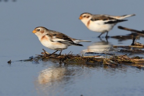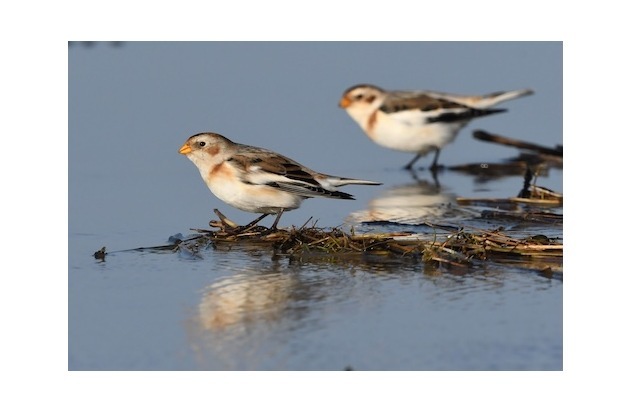 Ihren Namen trägt die Schneeammer aufgrund des eleganten Gefieders, das die Männchen zur Balzzeit im Frühjahr tragen: Dann sind sie schneeweiß, nur Flügel, Schwanz und Füße sind schwarz. Während sie bei uns sind, tragen die Vögel dagegen ein helles, sandfarbenes Federkleid. Ab März, wenn hierzulande der Frühling Einzug hält, zieht die Schneeammer zurück Richtung Norden. Hier öffnet sich nun stellenweise die dichte Schneedecke, sodass die Vögel trotz der anhaltenden Kälte wieder ausreichend Nahrung finden.