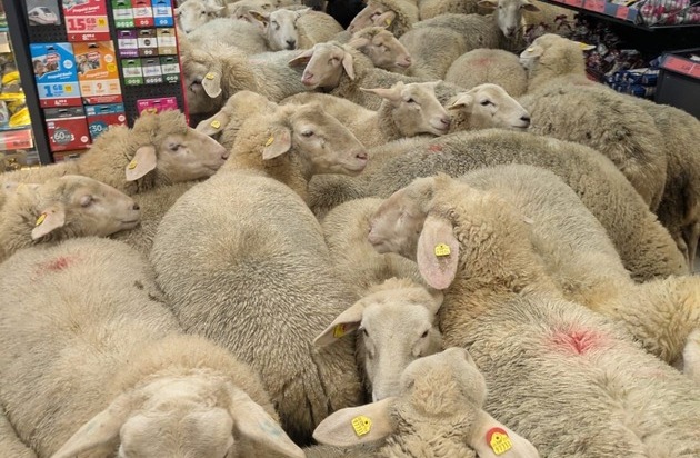 Erstmal zu PENNY. Das dachten sich wohl auch 50 Schafe als sie am Montag (05.01.) während eines Schafzuges am PENNY Markt in Burgsinn vorbeikamen. Statt der Herde zu folgen, spazierte der Trupp spontan in den PENNY Markt. Ob die Schafe auf der Suche nach einem bestimmten Angebot waren oder sich bloß aufwärmen wollten, das ließ sich leider nicht klären. Offensichtlich gefiel es dem Trupp im Kassenbereich des Marktes sehr gut. Nach 20 Minuten folgte die Ausreißergruppe dann doch wieder dem Tross der Artgenossen.