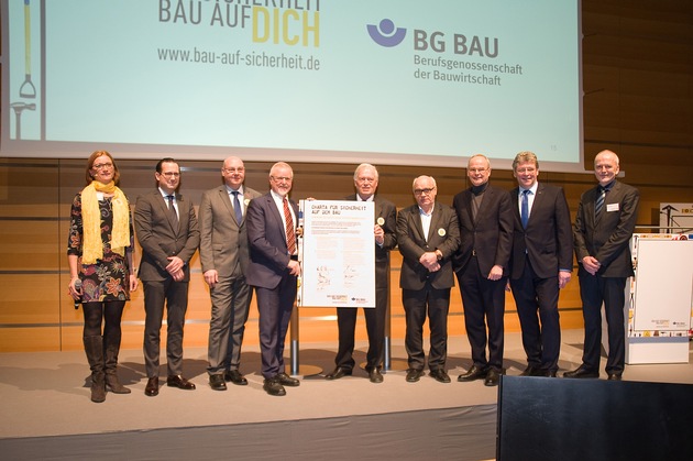 BAU AUF SICHERHEIT. BAU AUF DICH. So lautet der Titel des Präventionsprogramms, das die Berufsgenossenschaft der Bauwirtschaft (BG BAU) am 18. Januar 2017 auf der Fachmesse BAU in München gestartet hat. Grund: Der langjährige Trend eines deutlichen Rückgangs von Arbeitsunfällen hat sich in den letzten Jahren stetig verlangsamt. Die Maßnahmen des technischen und organisatorischen Arbeitsschutzes haben zu einem sichtbaren Rückgang des Unfallgeschehens geführt, reichen aber allein nicht aus, um den positiven Trend langfristig fortsetzen zu können. Immer deutlicher rückt der Anteil menschlichen Verhaltens am Zustandekommen von Unfällen in den Mittelpunkt der Betrachtungen. "Das bedeutet für uns, künftig noch stärker als bisher darauf hinzuwirken, dass sich die individuellen Verhaltensweisen der Beschäftigten positiv verändern", sagte Klaus-Richard Bergmann, Hauptgeschäftsführer der BG BAU. Höhepunkt der Auftaktveranstaltung war die Unterzeichnung einer "Charta für Sicherheit auf dem Bau" durch die Sozialpartner der Bauwirtschaft.