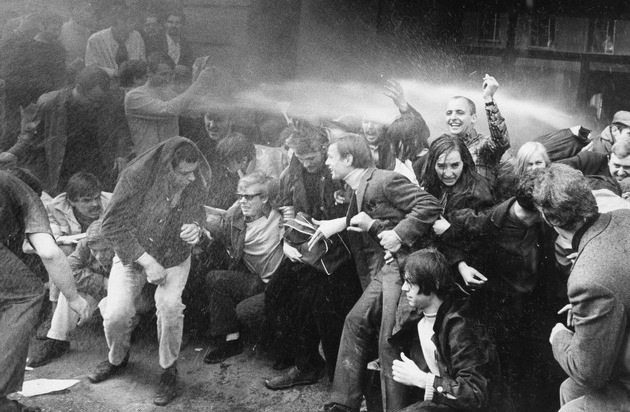 18 ausgewählte Aufnahmen aus seiner dpa-Zeit geben das Nachrichtengeschehen der 60er und 70er Jahre wieder. Aus einem Fundus von mehreren tausend Motiven hat Rehm außergewöhnliche Zeitzeugnisse ausgewählt. Darunter unter anderem die vier Angeklagten im Kaufhaus-Brandstifter-Prozess Thorwald Proll, Horst Söhnlein, Andreas Baader und Gudrun Ensslin im Frankfurter Landgericht, Altkanzler Konrad Adenauer beim Signieren seiner Memoiren in Bonn, eine Sicherungskompanie des Heimatschutzkommandos beim Einsatz mit Fahrrädern, der erste Schönheitssalon für Männer in Frankfurt oder das preisgekrönte Motiv von Zirkuselefanten, die in Frankfurt in einen Güterwagen einsteigen. Ein ganz besonderes Foto gelang ihm im Mai 1968, als er die Studentenunruhen an der Frankfurter Uni dokumentierte. Sein Foto von mit Feuerwehrschläuchen unter Wasser gesetzten Streikposten des SDS (Sozialistischer Deutscher Studentenbund) und VDS (Verband Deutscher Studentenschaften) ging um die Welt und bescherte ihm eine Nominierung für den begehrten Pulitzerpreis.