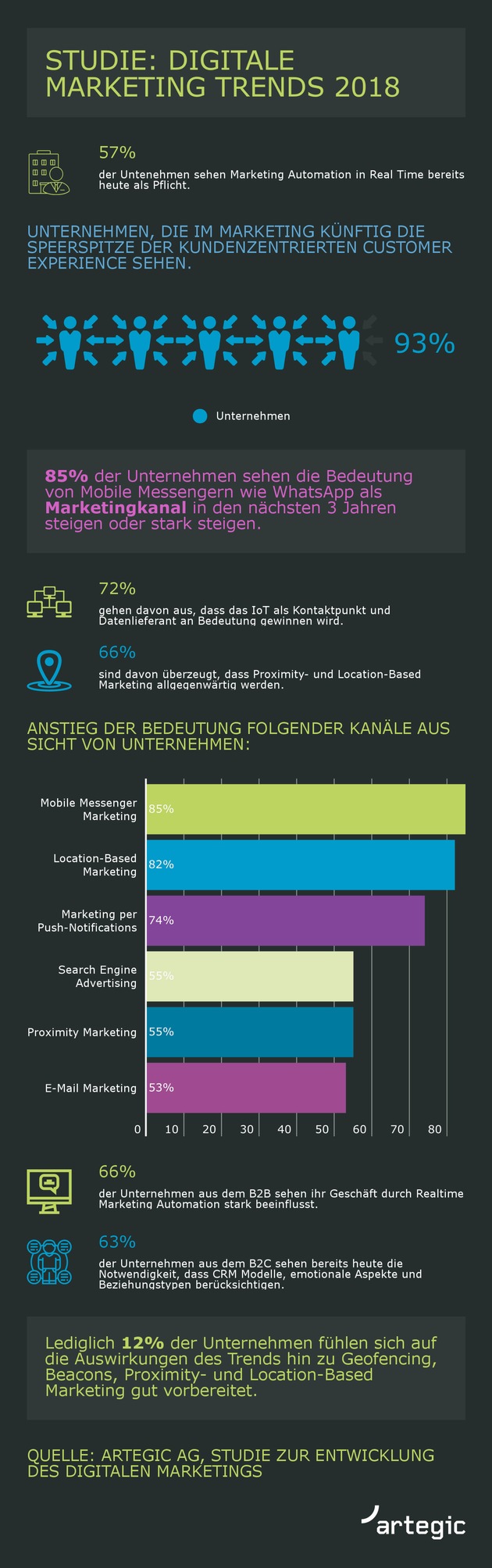Die vollständigen Studienergebnisse der Studie "Digitale Marketing Trends 2018" gibt es ab sofort zum kostenlosen Download unter https://www.artegic.com/de/studie-marketing-trends