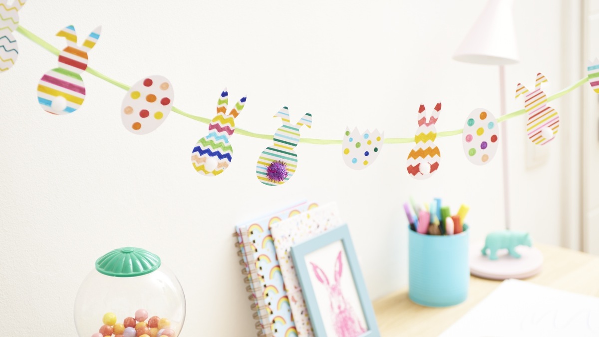 Kinder freuen sich mit Sicherheit über diese lustige Girlande, auf der Osterhasen mit Eiern um die Wette hüpfen. Die Girlande ist ganz leicht nachzumachen und sorgt für Bastelspaß bei den Kleinsten. Die Kinderfasermaler edding Funtastics sind die passenden Produkte für einen produktiven Mal- und Bastelnachmittag mit Freunden oder der ganzen Familie.