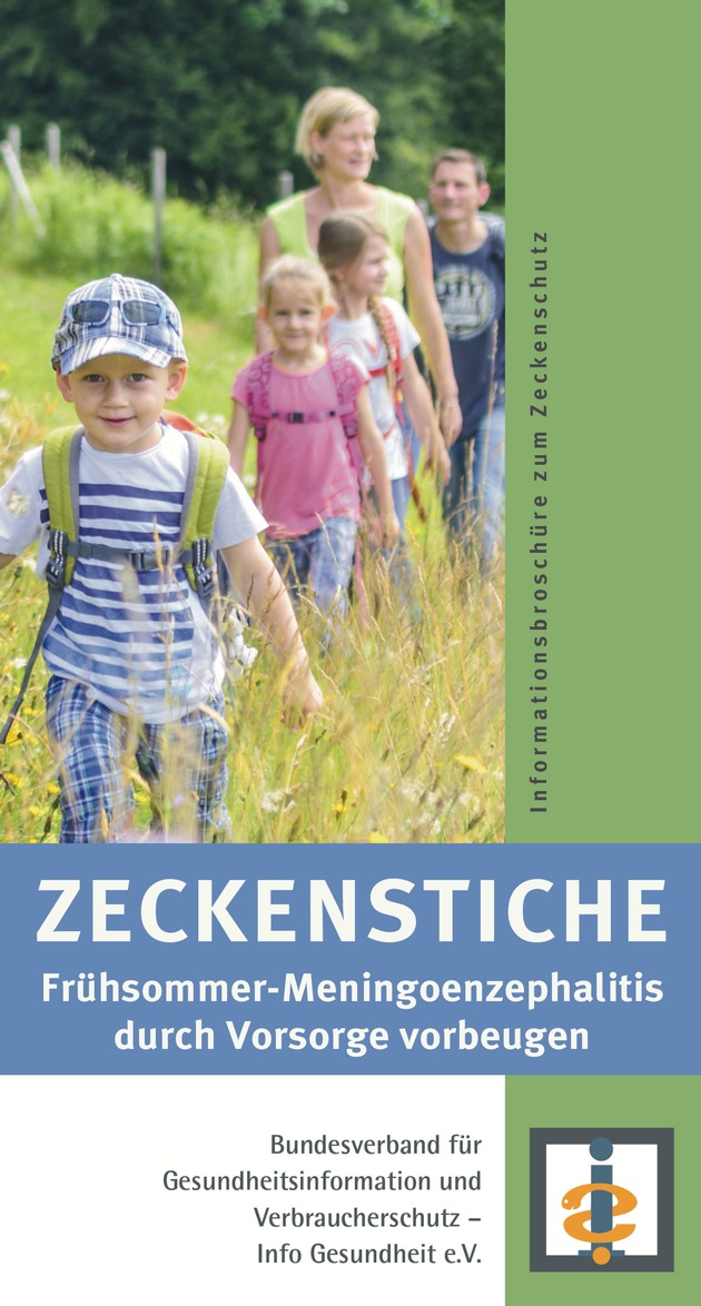 Zum Schutz vor einem Zeckenstich sind lange Kleidung, sorgfältiges Absuchen und Zeckenschutzmittel (Repellents) unerlässlich. In der Realität unterbleibt jedoch schon mal die eine oder andere Maßnahme, vor allem wenn Kinder und Jugendliche ohne Eltern unterwegs sind. Wer in der schönsten Jahreszeit viel draußen ist, sollte sich daher zusätzlich gegen die Frühsommer-Meningoenzephalitis (FSME) impfen lassen. Die Impfung gehört zu den Pflichtleistungen der Krankenkasse, wenn der Versicherte in einem vom Robert Koch-Institut ausgewiesenen Risikogebiet wohnt oder Urlaub macht. Eine Broschüre des Bundesverbands für Gesundheitsinformation und Verbraucherschutz e.V. (BGV) hält eine aktuelle Karte dazu bereit.