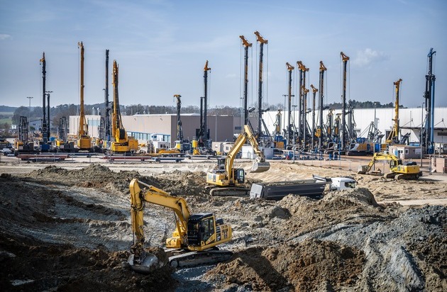 Seit einigen Wochen rollen in Aresing nahe Schrobenhausen die Bagger, täglich verlassen zahlreiche Lkw die Baustelle - und Schritt für Schritt nimmt eines der größten Investitionsprojekte der BAUER Maschinen GmbH der vergangenen Jahre Gestalt an. Mit einer neuen Produktions- und Logistikhalle investiert das Unternehmen gezielt in die Zukunft seines Standorts, optimiert seine Logistikprozesse und schafft so die Möglichkeit für weiteres künftiges Wachstum. Das Investitionsvolumen liegt im mittleren zweistelligen Millionenbereich.