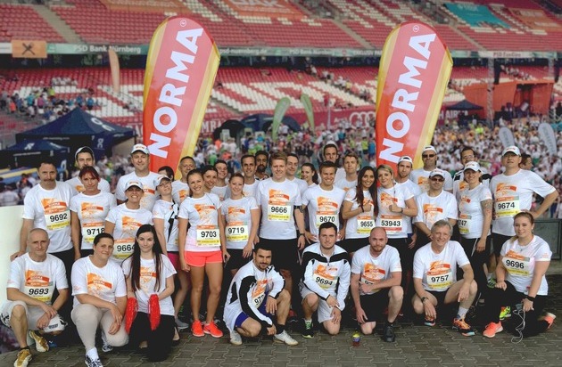 Wie immer bildete sich dabei eine Mannschaft, die sich aus allen Bereichen und Ebenen zusammensetzt: Ob Geschäftsleitung, Statistik, IT-Spezialist, Filialleiter oder Verkäuferin im Einzelhandel oder zurzeit noch als Azubi im Unternehmen - mit Teamspirit traten alle gerne im weiß-orange-roten NORMA-Laufdress der Eigenmarke "Speedstar" unter dem Motto "Hier läuft Qualität aus Franken" für ihren Discounter an. Der Erfolg, der dabei erzielt wurde, spricht für sich: Im Ranking der fittesten Unternehmen im Großraum Nürnberg (in der Kategorie über 100 und unter 1.000 Mitarbeiter / insgesamt beschäftigt NORMA in Deutschland, Frankreich, Tschechien und Österreich bereits rund 15.000 Mitarbeiter) liegt NORMA bei diesem Großereignis auf Platz 1. Am B2RUN-Firmenlauf 2016 im wirtschaftsstarken Großraum Nürnberg waren diesmal gut 17.500 Teilnehmer aus Unternehmen in jeder Größenordnung beteiligt, um sich als Team-Raketen für ihre Arbeitgeber zu präsentieren.