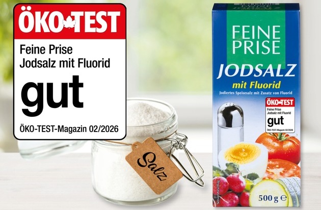 Zum Würzen empfohlen: Jodsalz mit Fluorid der NORMA-Eigenmarke FEINE PRISE im ÖKO-TEST 02/2026 mit "gut" bewertet