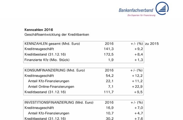 Kreditbanken bauen ihr Geschäft in 2016 weiter aus: Online-Finanzierungen wachsen um 23 Prozent