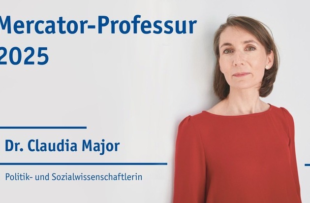 „Dr. Claudia Major ist eine Politik- und Sozialwissenschaftlerin, die zu den großen Fragen der internationalen Sicherheits- und Verteidigungspolitik forscht, lehrt und Stellung bezieht. Wir sind sehr gespannt darauf, sie als Mercator-Professorin an der Universität Duisburg-Essen erleben zu dürfen“, sagt Prof. Dr. Barbara Albert, Rektorin der Universität Duisburg-Essen. „Mit der Mercator-Professur ehrt die Universität Persönlichkeiten, die durch Weltoffenheit und Weitblick die großen Zeitfragen prägen.“