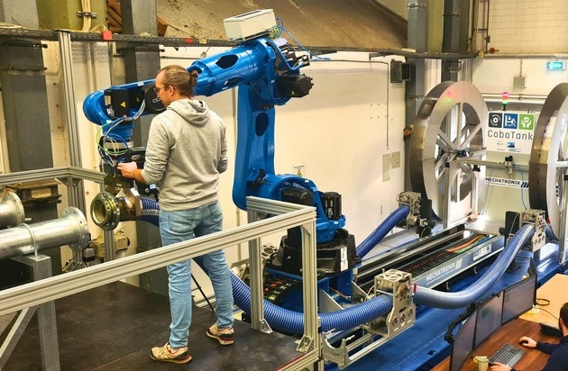 Damit die Zusammenarbeit reibungslos funktioniert, verfügt das System über umfangreiche Sensorik: Ein Kraft-Momenten-Sensor registriert die Bewegungsimpulse der Bedienperson, weitere Sensoren überwachen Umgebung und Schiffsbewegungen. Die größte Herausforderung sei gewesen, so Bruckmann, die sichere Kooperation zwischen Mensch und einem vergleichsweise großen Roboter zu gewährleisten – und ihn zugleich so präzise zu regeln, dass er selbst bei Wellengang millimetergenau mit dem Schiff mitläuft. Zudem musste ein völlig neues Bedienkonzept in ein Arbeitsumfeld integriert werden, das seit Jahrzehnten von Handarbeit geprägt ist. Ein entscheidender Erfolgsfaktor: Das Hafenpersonal war von Beginn an eingebunden – vom „alten Seebären“ bis zum Nachwuchs. Das kollaborative Robotersystem „CoboTank“ ist in Originalgröße am Lehrstuhl für Mechatronik zu sehen.
