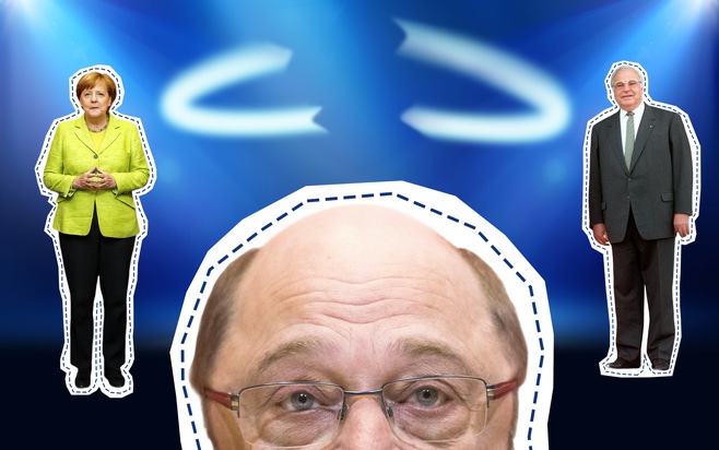 Martin Schulz dagegen tritt als eine Art "Helmut Kohl re-loaded" auf, wie Sprachanalysen der ersten Reden beider zeigen. Kohl beschwor in seiner historischen Antrittsrede als CDU-Vorsitzender von 1973 "Wohlstand" und die "Gemeinschaft der nach uns Kommenden". "Rot-Kohl" Schulz spricht von "Gerechtigkeit" und "Perspektive für unsere Kinder". Beide blieben unkonkret und in der eigenen Retter-Rolle verhaftet. Vielfach sind die Formulierungen austauschbar. Weitergedacht muss Merkel also erneut mit einem Typus Politiker in den Ring steigen, dem sie einst auf den CDU-Thron folgen konnte.