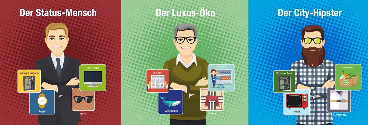 Zeigen, was man hat - so tickt der Status-Mensch. Er steht auf Gucci, Porsche und Rolex. Seine Facebook-Interessen zeugen von Geld, Status und Erfolg. Er schätzt Steve Jobs und den Motorsport. Ein Autobahn-Tempolimit lehnt er strikt ab. Sein Motto: Mit Klasse etwas für die Umwelt tun - schnell und technisch überlegen. Fahrzeuge von Tesla, BMW i oder Mercedes EQ sind erste Wahl. Als Zweitwagen für die Stadt vielleicht ein Mini, aber eher kein ZOE (Renault), C-Zero (Citroen) oder i-MiEV (Mitsubishi).