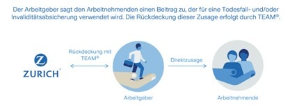 Über die Zurich Eurolife S. A. aus Luxemburg bietet Zurich in Deutschland für Unternehmen ab 20 Mitarbeitende mit TEAM® zudem eine über den Arbeitgeber finanziertes Existenz-Absicherungs-Modell an. Hier können ganze Belegschaften oder auch definierte Teilgruppen (z.B. Führungskräfte) gegen Todesfall, Berufs‑ oder Erwerbsunfähigkeit abgesichert werden.