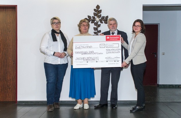Santander unterstützt Deutsches Katholisches Blindenwerk mit 2 000 Euro