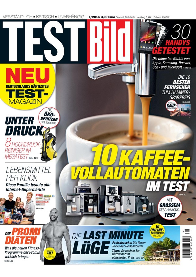Nutzerbewertungen sind heute genauso ausschlaggebend für Kaufentscheidungen, wie kritische und unabhängige Tests von Experten. Beides kombiniert das neue Magazin TESTBILD, das am Freitag, 27. Mai 2016, in den deutschen Zeitschriftenhandel kommt. Chefredakteur Axel Telzerow: "Mit TESTBILD bringen wir Deutschlands erstes Magazin mit einer perfekten Mischung aus kompetenten und unabhängigen Experten-Tests und überprüften Käufer-Rezensionen zu aktuellen Produkten auf den Markt."
