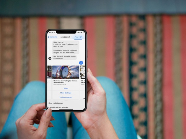 MIKHAIL: Momentan ist er noch relativ simpel. Man kann den Chat Bot ansprechen und er gibt einem Tipps und Insights zu PR-Themen, die wir auf der PR-Academy von news aktuell zur Verfügung stellen. Zusätzlich empfiehlt er Stories aus unserem Blog TREIBSTOFF.