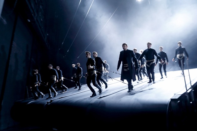 Ulrich Rasches Inszenierung des Dramas in voller Länge ist im Anschluss an die Dokumentation um 20.55 Uhr in 3sat zu sehen. Eindrücklich zeigt sie Freiheit und deren Grenzen: Leben, das Zwängen und unabänderlichen Mechanismen unterworfen ist. Die Protagonisten der Inszenierung sind eingespannt in ein monströses Räderwerk. Auf zwei gewaltigen beweglichen Laufbändern marschieren sie durch die gut dreistündige Aufführung. Das Leben wird als Maschine gezeigt: Einmal angeworfen, schreitet es unaufhörlich voran. Die Räuberbande schmettert als Chor Schillers Verse in überwältigender Wucht gen Publikum, und der Zuschauer beginnt zu begreifen, welche Wirkung geballte Massen haben können.
