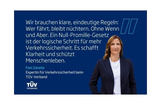 Berlin, 26. Januar 2026 – Alkohol und andere Drogen am Steuer sind eine der größten Gefahren im Straßenverkehr. Dennoch erlaubt das Gesetz bislang den Konsum in bestimmten Grenzen. Im Vorfeld des 64. Deutschen Verkehrsgerichtstags fordert der TÜV-Verband ein klares gesetzliches Verbot: kein Alkohol, keine Drogen am Steuer. Konkret fordert der Verband ein absolutes Alkoholverbot für alle Kraftfahrzeugführenden sowie eine bundesweit einheitliche Null-Toleranz-Politik gegenüber anderen Drogen. „Zwar gelten Bier, Wein und viele Spirituosen als Kulturgüter. Wir sollten uns aber von der Vorstellung verabschieden, dass selbst ein maßvoller Konsum im Straßenverkehr ungefährlich und somit akzeptabel ist“, sagt Fani Zaneta, Expertin für Verkehrssicherheit beim TÜV-Verband. „Wir brauchen klare, eindeutige Regeln: Wer fährt, bleibt nüchtern. Ohne Wenn und Aber. Ein Null-Promille-Gesetz ist der logische Schritt für mehr Verkehrssicherheit. Es schafft Klarheit und schützt Menschenleben.“