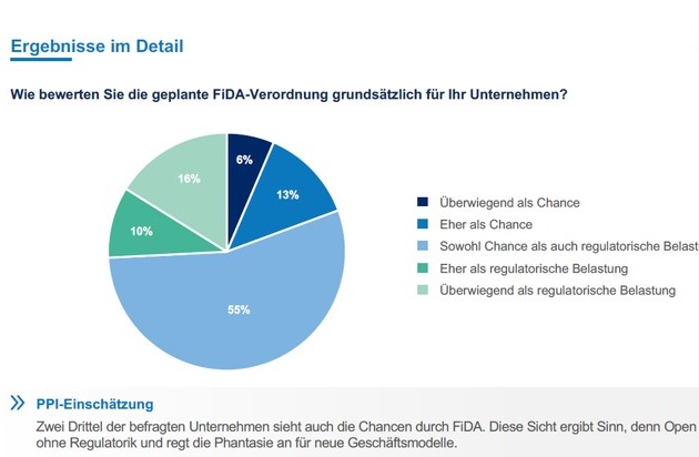 Die Marktanalyse "FiDA Blitz" ist das erste Stimmungsbarometer der PPI AG zur kommenden FiDA-Verordnung. 31 Experten aus Versicherungen, Maklerbetrieben und sonstigen Vertriebsorganisationen beantworteten 13 Fragen zum eigenen Aufgabenfeld im Unternehmen, zum Unternehmen selbst und zum Themenkomplex FiDA. Die Ergebnisse der Marktanalyse können auf der Webseite der PPI AG gegen Angabe der Kontaktdaten heruntergeladen werden. Mehr Informationen: