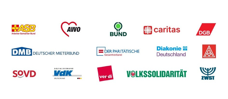 Die unterzeichnenden Verbände vertreten gemeinsam mehr als 20 Millionen Mitglieder, Beschäftigte, ehrenamtlich Aktive und Ratsuchende. Sie erleben jeden Tag, wie Solidarität entsteht und welche riesigen Potenziale in einem gerechten und leistungsfähigen Sozialstaat stecken. Die Verbände sind davon überzeugt, dass es sich lohnt, für eine Politik zu kämpfen, die den Sozialstaat stärkt und von der alle Menschen in Deutschland profitieren.