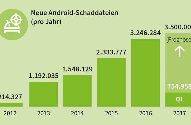 Rund 67 Prozent der Deutschen nutzen ein Smartphone mit einem Android-Betriebssystem (Quelle: Statcounter). Im ersten Quartal 2017 entdeckten die G DATA Sicherheitsexperten über 750.000 neue Schad-Apps für das beliebte Betriebssystem von Google. Die Zahlen belegen eine wachsende Bedrohungslage. Die Sicherheitsproblematik bleibt gerade bei Geräten von Drittherstellern unverändert. Updates erscheinen verzögert oder gar nicht. Die neuen Malware-Statistiken für das erste Quartal 2017 und eine Einschätzung der aktuellen Situation gibt es im G DATA Security Blog.
