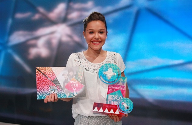 Erfurt, 25. September 2015 - In der großen Mode-Show "Mein Style" des Trendmagazins "KiKA LIVE" haben erneut vier junge, kreative Designtalente im Alter von zwölf bis 16 Jahren gezeigt, wie viel Kreativität in ihnen steckt. Zwei Wochen lang stellten sie sich kniffligen Aufgaben, bewiesen Geschicklichkeit, Ideenreichtum und Mut zum eigenen Stil. Im großen Live-Finale standen die Nachwuchsdesigner dann vor einer ganz besonderen Herausforderung: "It's Showtime - Deine Kollektion". Alle vier Kandidaten legten sich noch einmal mächtig ins Zeug, um den begehrten Titel "Bester Modemacher 2015" für sich zu entscheiden. Am Ende konnte sich die 14-jährige Tabitha aus der Nähe von Darmstadt im großen Live-Finale gegen die Konkurrenz durchsetzen und erhielt die meisten Stimmen im Zuschauervoting. Auch die "KiKA LIVE"-Moderatoren Jess und Ben waren begeistert von den besonderen Einfällen und deren geschickter Umsetzung. Anschließend überreichten der strahlenden Siegerin den "KiKA LIVE - Mein Style!"-Pokal. Doch damit nicht genug -Tabitha ist nun auch ein Jahr lang als Modebloggerin auf der "KiKA LIVE"-Homepage auf kika.de.