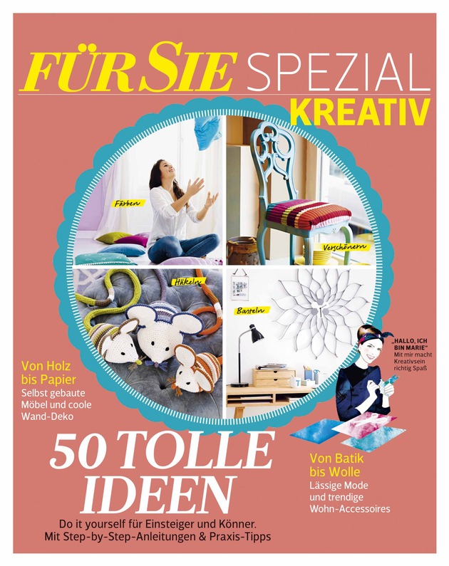 Die Frauenzeitschrift FÜR SIE bringt ein neues Sonderheft heraus - "FÜR SIE SPEZIAL KREATIV" heißt das 84-seitige Magazin, das sich an eine kreative, Do-it-yourself-begeisterte Leserschaft wendet und ab Montag, den 15. Februar, mit einer Startauflage von 42.000 Exemplaren für 4,90 Euro im Handel erhältlich ist.