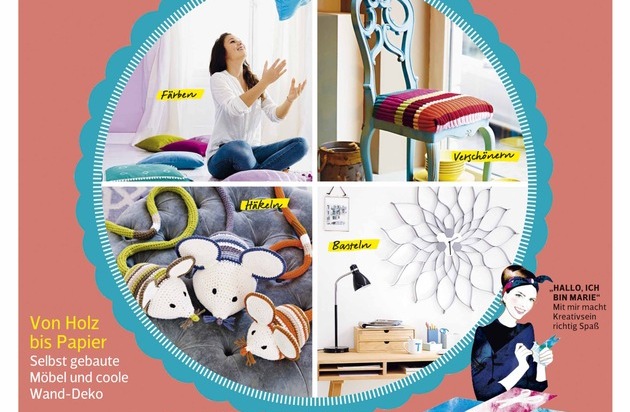 Die Selbermach-Themen reichen dabei von Heimwerker-Ideen für Möbel und Wohnaccessoires, Strick- und Häkel-Modellen bis zu Lifestyle-Trends und Bastel- Anregungen, die unser Zuhause verschönern und viel individuellen Flair versprühen.