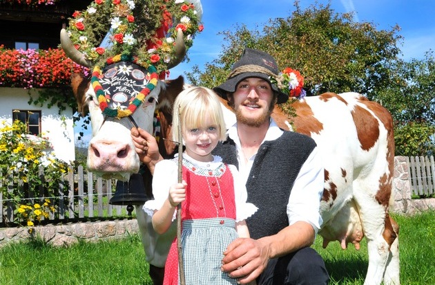 Bunt geschmückte Kühe, Handwerkskunst und echte Tiroler Schmankerln machen den Almabtrieb im Tiroler Dorf Reith im Alpbachtal zu einem besonderen Fest, das jedes Jahr an den letzten beiden Samstagen im September (19.& 26.9.) gefeiert wird. Der Reither Bauernmarkt mit Almabtrieb zählt zu den größten Festen dieser Art in Tirol. Jeweils um 10 Uhr beginnt das Festtreiben mit dem Einzug der Musikkapelle und einem Platzkonzert. Entlang der Schmankerl- und Handwerkerstraße verwöhnen Bauern mit regionalen Spezialitäten und über 40 Handwerker geben Einblicke in ihr traditionelles Kunsthandwerk. Ab 12 Uhr werden die ersten Kühe durch das Ortszentrum in die heimatlichen Ställe trotten. Die dickbäuchigen Schönheiten versetzten die Zuseher immer wieder in Verzücken, denn die Reither Bauern schmücken ihre Kühe mit prächtigen Bändern, farbenfrohen Kopfschildern und fröhlich klingenden Glocken. Infos unter: www.alpbachtal.at/almabtrieb