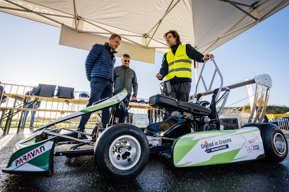 Das Inklusionsprojekt „United in Dreams“ bringt Menschen mit und ohne Behinderung zusammen und schafft einen inklusiven Einstieg in den E-Kart-Slalomsport. Für die Veranstaltung wurde ein behindertengerecht umgebautes Elektro-Kart zur Verfügung gestellt, das für jeden Teilnehmer und jede Teilnehmerin individuell angepasst werden kann. Statt mit Lenkrad und Pedalen wird dieses Kart mit Joysticks bedient. Um sich auf das Kart einstellen zu können, hatten die Teilnehmerinnen und Teilnehmer Zeit, ein paar Trainingsrunden zu drehen, bevor es in die zwei Wertungsläufe ging.