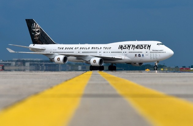 Die Bemalung ihres Jumbo-Jets ist ebenso ungewöhnlich wie ihr ILA-Auftritt: Iron Maiden, eine der erfolgreichsten Heavy-Metal-Bands der Welt, ist auf ihrer aktuellen Welttournee in Berlin eingetroffen und parkt derzeit auf dem Freigelände der ILA 2016. Am heutigen Dienstag werden die britischen Rocklegenden in der Waldbühne ihr 150. Deutschlandkonzert geben. Der neue "Ed Force One", der band-eigene Boeing 747-400 Jumbo-Jet, wird von Leadsänger Bruce Dickinson höchstpersönlich geflogen. Der ehemalige Berufspilot transportiert die Band, die Crew und über zwölf Tonnen Equipment um die Welt. Iron Maiden wird im Rahmen ihrer The Book of Souls World Tour 2016 in 35 Ländern auf allen Kontinenten auftreten und dabei mehr als 90.000 Kilometer mit der "Ed Force One" zurücklegen. Die Maschine verlässt am Mittwoch (1.6.) gegen 14 Uhr die ILA.