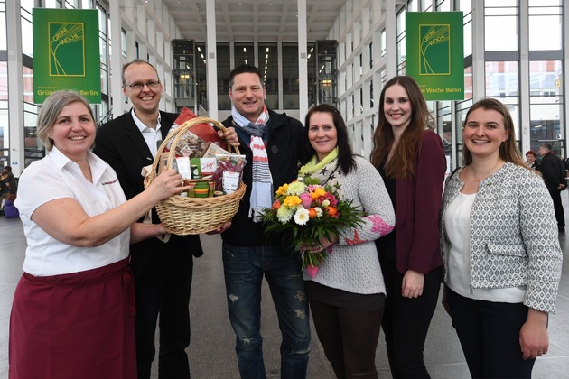 Bei der Ticketkontrolle waren sie noch misstrauisch, aber dann wurde es doch eine "tolle Überraschung", wie es Mathias Ludwig aus Groß Kreutz in Brandenburg ausdrückte. Als 200.000. Besucher der Grünen Woche überraschten ihn und seine Frau Repräsentanten der Bio-Halle mit einem großen Präsentkorb samt Blumenstrauß. Er ist Lokführer, seine Frau Gabriele Zugbegleiterin bei der Deutschen Bahn. "Aber wir fahren nur ganz selten im selben Zug." Umso mehr genießen sie es, wenn sie mal gemeinsam einen freien Tag haben. Den haben sie schon öfter auf der Grünen Woche verbracht, und diesmal machte er ihnen besondere Freude. Beim Genuss des Bio-Weins oder der Rote-Bete-Spaghetti werden sie sich noch lange daran erinnern.