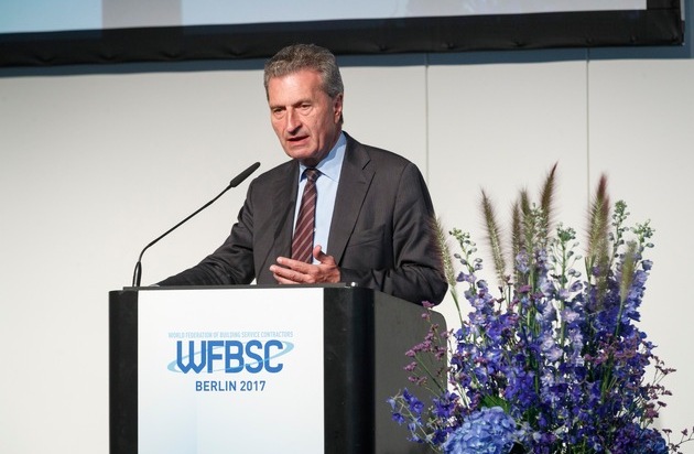 EU-Kommissar Oettinger sieht die Digitalisierung als Chance für die Gebäudedienstleister - Über 500 Entscheidungsträger der Reinigungsbranche aus allen Kontinenten in Berlin