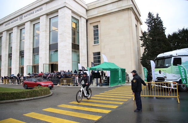 Bei der 88. Jahrestagung des Inland Transport Committee in Genf konnten Verkehrspolitikerinnen und -politiker aus aller Welt hautnah erleben, wie moderne Technologien dazu beitragen können, kritische Situationen im Straßenverkehr zu vermeiden und im Ernstfall Leben zu retten. Die technische Demonstration von DEKRA, unterstützt von anderen Mitgliedern der Coalition for Cyclist Safety, zeigte verschiedene Szenarien, in denen dank V2X-Kommunikation ("Vehicle to Everything") Verkehrsteilnehmende Gefahren früher wahrnehmen und deshalb sicherere Entscheidungen treffen können, so dass Kollisionen vermieden werden.