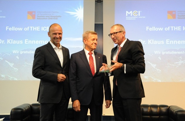 Aufgrund seiner herausragenden Verdienste in Hinblick auf die internationale Professionalisierung des Tourismus sowie der Tourismusausbildung wurde Klaus Ennemoser auf Vorschlag des MCI in Würdigung seines Lebenswerks zum "Fellow of THE ICE" gekürt. Die Überreichung wurde im Namen von THE-ICE vom Rektor des MCI Andreas Altmann und dem Leiter des MCI Tourismusdepartments Hubert Siller vorgenommen. Die Unternehmerische Hochschule(R) gratuliert.