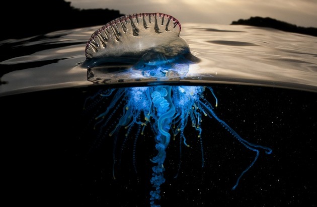 Überleben auf Hoher See: Der vierte Teil der WDR/BBC-Naturfilmserie "Der Blaue Planet" zeigt am Montag, 12. März 2018, 20:15 Uhr, wie einige der größten und eindrucksvollsten Tiere der Welt in der "Sahara der Meere" ihr Leben meistern. Dank spezieller, drucksicher Kameras wurde das Filmteam Zeuge von spektakulären Jagden auf hoher See. Pottwale tauchen einen Kilometer tief, um Tintenfische zu erbeuten. Portugiesische Galeeren fangen ihre Beute mit bis zu 30 Meter langen Tentakeln und tausende Delfine treiben vor Costa Rica Laternenfische zusammen, um sie unterhalb der Oberfläche einzufangen. Einzigartige Bilder der flüchtenden, aus dem Wasser springenden Laternenfische entlarven, was sich hinter der jahrhundertealten Legende von der "kochenden See" verbirgt.