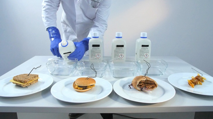 6. Februar 2017. Ein Cheeseburger liegt oft schwer im Magen und macht trotzdem nicht lange satt. Warum eigentlich? Für "15 Dinge, die Sie über Burger King wissen müssen" sucht Dr. Stephan Lück am Mittwoch, 8. Februar 2017, um 20:15 Uhr in SAT.1 nach Antworten. Der Experte für Ernährungs- und Stoffwechselphysiologie simuliert im Labor den Verdauungsprozess von Deutschlands beliebtesten Fast-Food-Mahlzeiten. Im Rennen: Cheeseburger, Döner, Currywurst mit Pommes und eine Vollkornschnitte mit Butter und Käse. Überraschend: Die Vollkornschnitte wird am schnellsten verdaut, obwohl sie am längsten satt hält. Auf Platz zwei liegt der Döner, gefolgt von Cheeseburger und Currywurst. "Das Problem ist, dass diese Produkte oft wenige Ballaststoffe enthalten. Die braucht der Magen aber, damit er arbeiten kann. Deshalb haben wir nach Fast Food oft ein unwohles Gefühl", erklärt Lück. "Gleichzeitig sind Fast-Food-Produkte so konstruiert, dass sie schnell schluckbar sind. Dafür muss viel Speichel fließen. Das erreicht man durch Zitronensäure. Um die zu ertragen, wird viel gezuckert. Der Blutzuckerspiegel schießt nach oben. Wenn er danach wieder stark abfällt, ist die Folge Hunger."