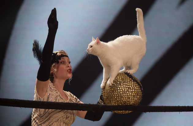 "Katzen sind von allen Tieren am schwierigsten zu trainieren", behauptet Katzentrainerin Anelya Roslyakova bei "Superpets - Die talentiertesten Tiere der Welt" am Freitag, den 1. Dezember um 20:15 Uhr in SAT.1. Ihre weiße Katze balanciert über einen rollenden Ball, bevor sie zum Handstand ansetzt und ihre Hinterpfoten in die Höhe streckt. Michelle Hunziker: "Ich finde Katzen so faszinierend. Früher waren bei uns teilweise bis zu sieben Katzen im Haus. Ich war also ein totaler Katzen-Fan. Es ist wirklich schwierig, Katzen etwas beizubringen, das sie auch selber wollen." Jorge González: "Man braucht mit Katzen wirklich viel Geduld. Als Kind hatte ich mehr als 16 Katzen." Christoph Maria Herbst: "Ich weiß nicht, was ihnen mehr im Wege steht: ihre Eitelkeit oder Sturheit. Ich glaube man muss Katzen immer das Gefühl geben, dass sie selbst die Idee zu den Kunststücken hatten."