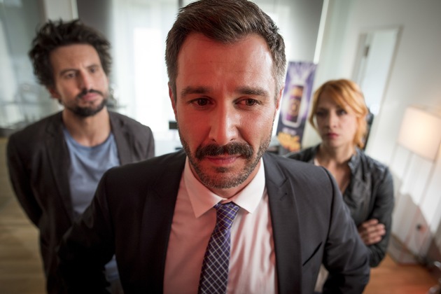 Einstein (Tom Beck; l.) und Elena Lange (Annika Ernst, r.) are watching you, Herr Abmeyer (Jochen Schropp, M.)