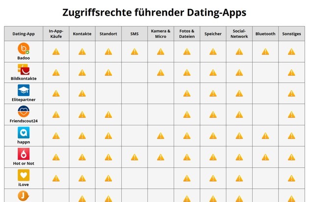 Die Experten von www.singleboersen-vergleich.de haben 15 Dating-Apps für Android im deutschsprachigen Raum auf ihr Risikopotenzial analysiert, unter anderem Badoo, Tinder, PARSHIP, ElitePartner, Friendscout24, Zoosk und Lovoo.