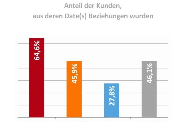 Egal, ob hochpreisige Partneragentur (Parship: 450,- Euro für 6 Monate), Allround-Singlebörse LoveScout24 (150,- Euro) oder kostenlose Flirt-Apps wie Lovoo: Überall gelang es rund der Hälfte der Nutzer, sich zu Blind-Dates im wahren Leben zu verabreden.