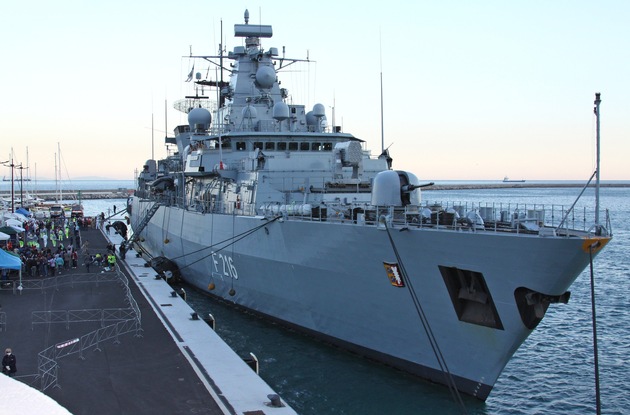 Am Samstag, den 7. November 2015 um 10 Uhr, wird die Fregatte "Schleswig-Holstein" nach 5 Monaten Abwesenheit in ihren Heimathafen Wilhelmshaven zurückkehren. Unter dem Kommando von Fregattenkapitän Marc Metzger (42) sind die Männer und Frauen der "Schleswig-Holstein" am 1. Juni 2015 aus Wilhelmshaven ausgelaufen und nahmen als erstes Schiff der Deutschen Marine an der Mission EUNAVFOR MED Operation "Sophia" teil.