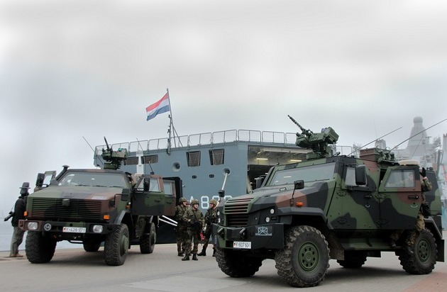 Die Marineinfanteristen aus Eckernförde werden zusammen mit den Kameraden des niederländischen Korps Mariniers von Bord der 200 Meter langen "Karel Doorman" eine Woche lang amphibische Verfahren trainieren. Die Zusammenarbeit ist Kern der deutsch-niederländischen Kooperation, die im Februar 2016 zwischen den Verteidigungsministerinnen beider Länder geschlossen wurde.