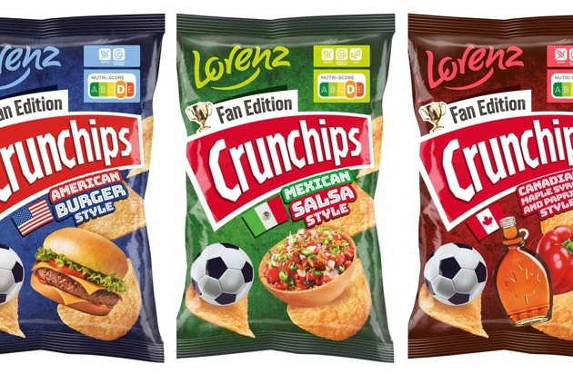 Offenbach, April 2026. Zur Fußball-WM 2026 setzt Lorenz auf eine aufmerksamkeitsstarke Sortimentserweiterung: Ab KW 18/2026 kommen die Crunchips Fan-Editions in den Handel. Drei limitierte Sorten, abgestimmt auf die Austragungsländer USA, Kanada und Mexiko, schaffen klare Kaufanreize und bieten hohes Aktivierungs- und Zweitplatzierungspotenzial.