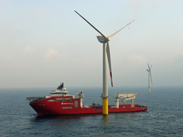 Für die Inbetriebnahme der einzelnen Windanlagen wurde das unter norwegischer Flagge fahrende Spezialschiff AKER WAYFARER gechartert. Das 157 Meter lange Schiff ist mit zwei Schwerlastkränen ausgestattet und hat neben der Crew bis zu zehn Techniker an Board.