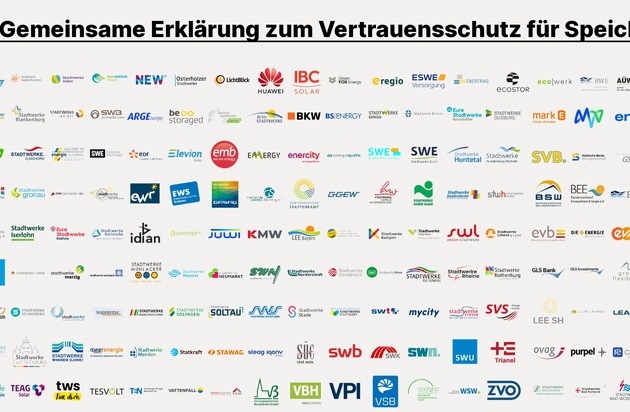 Unter den Zweitunterzeichnern der Erklärung finden sich große Energieversorger wie Vattenfall GmbH, die MVV Energie AG, die DEW21 Dortmunder Energie- und Wassersversorgung GmbH und die GASAG AG ebenso wie zahlreiche kleine und mittlere Stadtwerke, darunter die Stadtwerke Elmshorn GmbH, die Stadtwerke Esslingen am Neckar GmbH und die Stadtwerke Niesky GmbH. Darüber hinaus haben sich weitere Speicher- und erneuerbare Energien Projektierer wie ABO Energy, be.storaged und Enertrag genauso angeschlossen wie mit u.a. GLS Bank und re:cap global investors auch Finanzakteure.