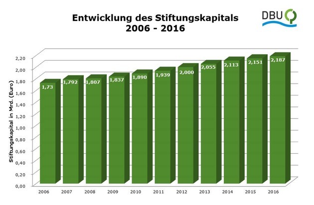 Insgesamt gingen im Vorjahr bei der DBU 722 Anträge und Projektskizzen ein (2015: 675). Die Bewilligungssumme stieg mit 51,1 Millionen Euro gegenüber 2015 (49,4) leicht an. 184 Projekte (247) wurden gefördert. Damit hat die Stiftung seit Aufnahme ihrer Fördertätigkeit im März 1991 rund 1,7 Milliarden Euro für mehr als 9.500 Projekte an Fördermitteln bewilligt und damit mehr Geld in den innovativen Umweltschutz investiert, als sie seinerzeit als Stiftungskapital erhalten hatte (1,288 Milliarden Euro).