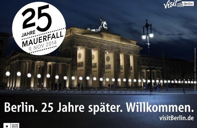 Berlin lädt die Besucher ein, sich gemeinsam mit den Bewohnern der Stadt am zweiten Wochenende im November an die Zeiten des Mauerfalls zu erinnern und Teil einer großen Inszenierung zu werden. Die Berliner werden die Feiern nutzen, um zu zeigen, was sie in den 25 Jahren aus ihrer historischen Chance gemacht haben. Im Zentrum steht die sogenannte Lichtgrenze: 8.000 erleuchtete Ballons werden auf einer Länge von 15 Kilometern den früheren Grenzverlauf zwischen Bornholmer Straße und Oberbaumbrücke nachbilden. Zahlreiche Schautafeln werden im Verlauf der Lichtgrenze über individuelle Schicksale von Menschen informieren, die versuchten, die Grenze zu überwinden. Außerdem gibt es Gedenkveranstaltungen und Musikkonzerte. Enden wird die von Kulturprojekte und dem Berliner Senat initiierte Lichtinstallation am Abend des 9. November mit dem Aufsteigen der Ballons als Symbol für den Mauerfall und das Ende der innerstädtischen Teilung.