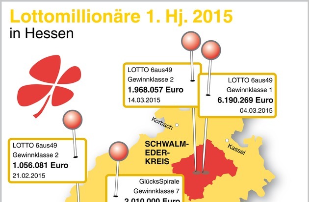 Lotto Hessen hat im ersten Halbjahr 2015 gegenüber dem Vorjahreszeitraum einen Umsatzzuwachs in Höhe von 5,1 Prozent erzielt. Insgesamt 36,6 Millionen Spielscheine im Wert von 317,9 Millionen Euro gingen im Webshop lotto-hessen.de und den mehr als 2.000 Verkaufsstellen bis 30. Juni ein. Statistisch gesehen tippte jeder Hesse zwischen Januar und Juni pro Kopf für 52 Euro, im ersten Halbjahr 2014 lag dieser Wert bei 50 Euro.